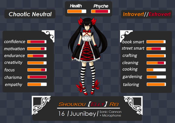 Incredible! I've absolutely fallen in luff with this character. 8'''D It's obvious you worked really hard on her. Not only is she well defined but the accompanying art is great! I like your style. So distinct too. I think that chair is one of the most original twists in a character I have seen in a while. I love it! Wonderful work! I wish you the best of luck in the tourney. 8D