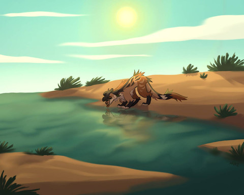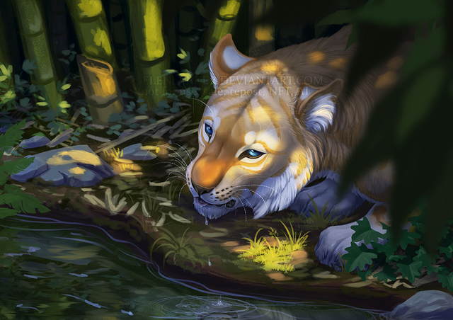 Where you can see the blood from their paws, how there's probably blood still on their mouth, and how you can see their footsteps leading up to the pool- there's even a splash zone in the back >;3c