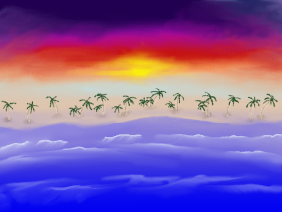 I don't know how to explain it, but when I was younger, I drew something that I called my place of paradise. It had a sunset and a beautiful tree and hills. Now that I'm older I can redraw it, and so this is what I would call my place of paradise now. I could just sit under that tree and watch the clouds go by and the hills sing all day.