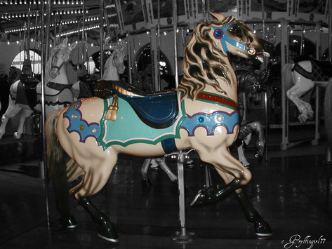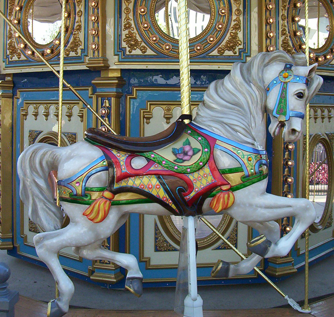 That's a pretty carousel, the horse looks wild. Makes me wanna go to an amusement park.