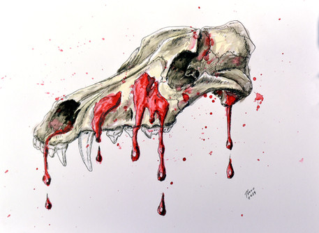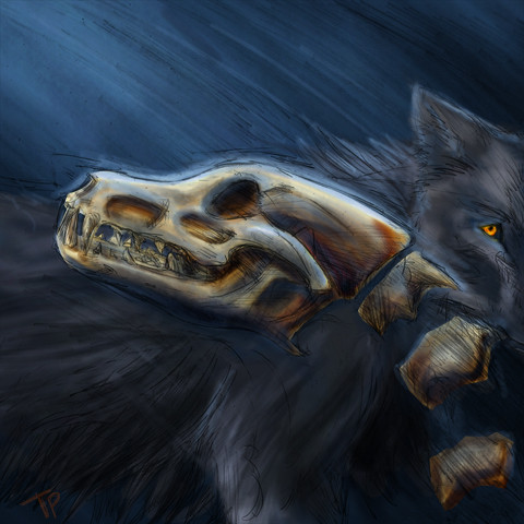 #bones #canine #color #dead #howling #inks #lupine #pencil #skull #wolf