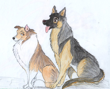Hello collie peeps.This is a small thing I worked up to show that I'm taking on pet commissions again, only this time, as cartoons! Here is a border collie and a rough collie. If commissioned, yours will be in a bit better quality than these. :3