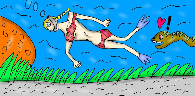 The fish's membrane as well as her swim mask fit well too. The fish is thus very much in love; it's one way of hugging her.