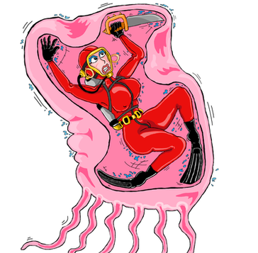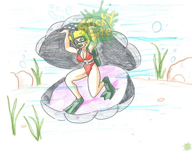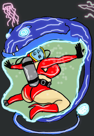 i love the fish's face and her reaction. also the trapped bubbles are a clever touch.