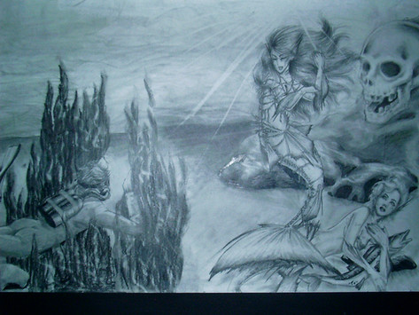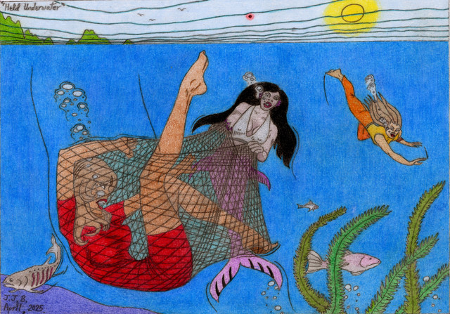 #aquatic #bubbles #decoy #fantasy #fear #females #fish #happy #helpless #light #peril #screaming #sexy #swimsuit #transforming #underwater #captured #macabrehorror #mermaid #seashell #tail #traditionalart #trapped #womangirl #boundgirl #sirenmermaid #mermaiddrawing #stuckfetish #victimgirl