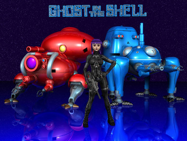 Designed as fanart from Ghost in the Shell. The Fuchikoma tank was modeled in Rhino3D, and materialed in Cinema 4D.Major Motoko Kusanagi was based on the Aiko3 model from DAZ3D. Her outfit is the catsuit retextured with the Neural Ghost Mats also from DAZ3D. Her hair was modeled in Rhino 3D. The scene itself is 1152x864, and was rendered in Cinema 4D.