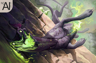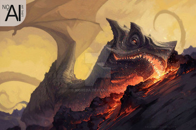 "The infernal beast rise up from the lava lake, ready to wreck havoc- but they wait, pausing for a moment to get the okay from their overlord"
