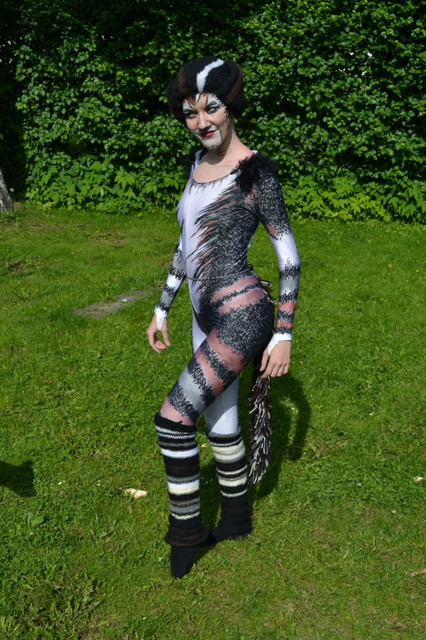Me as Hamburg Rumpleteazer (Cats).The wig is authentic and the unitard was sewn my MephistaJellicle and altered my MisToxic.