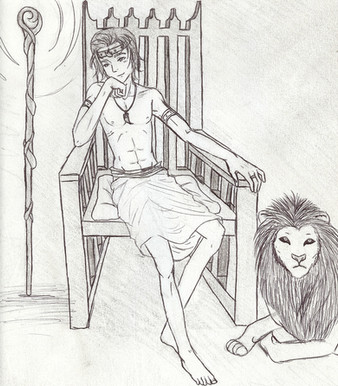 This is Mau, the main character from Terry Pratchett's Nation.feat. little blue hermit crab.