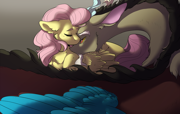 Discord reaches into his ear and pulls out a little box, "Fluttershy, will you be my Queen of Chaos?"