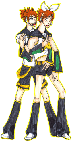 I found a lot of inspiration for their design in the Kagamine twins As well as the Hitachiin twins from Ouran High School Host club