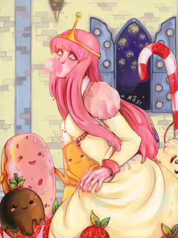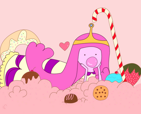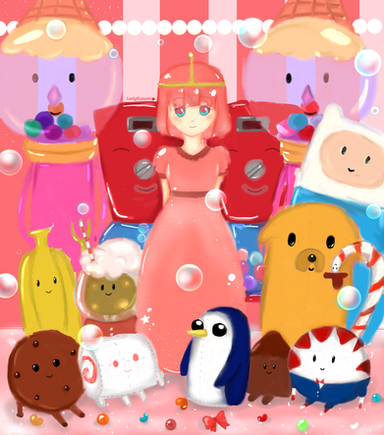 Well, now that was a lot of work.Anyways, not gonna talk much down here, just say I've always wanted to do a Princess Bubblegum piece (in colours of corse, I mean, she's pink, yay pink <3). And then I got carried away and decided to add a background and all that candy and yeah, there you go.
