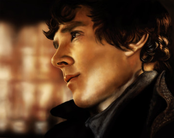 Oh I am terribly happy to see you draw Sherlock once more. He looks stunning. The colouring on his face looks very watercolour-y, which it's beautiful, his face, his expression, the colours. All perfect.Β
