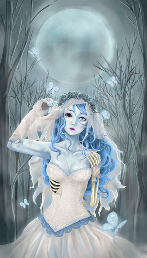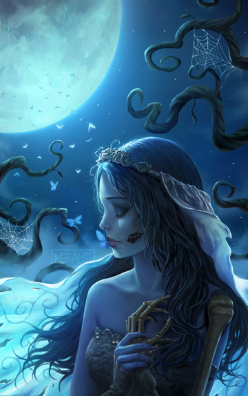#anime #bride #fanart #halloween #macarbe #skeleton #tim #bluehair #burton #corpsebride #digitalpainting #emily #fanartdigital #timburton #weddingdress #emilycorpsebride