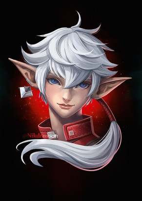 A drawing of a friend's Final Fantasy 14 character, the broody dusky elf, Moth. Love him to pieces <3!Related content