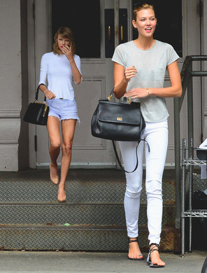 I love how Taylor puts so much effort into trying to look half as good as Miley with her heels, hair and dress and fails miserably Miley in just a dirty old shirt, ripped up jeans, casual flat sneakers and half grown out bleached hair completely blows Taylor out of the water