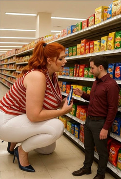 brightbase1 - Giant woman turning heads at grocery store [🤖]