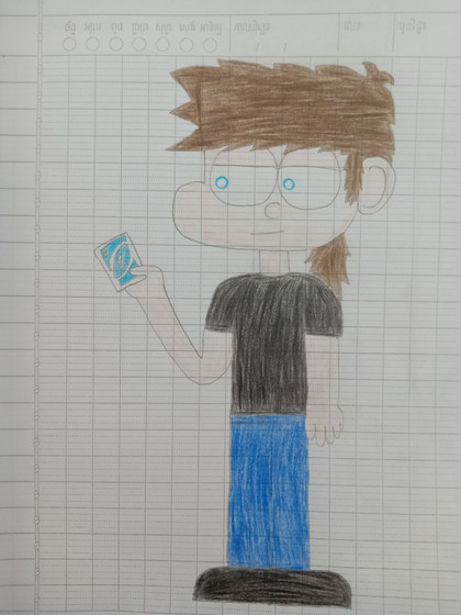 Appearance: Short Blond hair, Lavender Beanie, Long Red scarf, White sweater, Violet shirt, Tan baggy shorts, Black converse