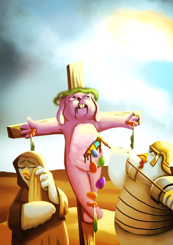this is perfect. cuz the bunny is actually an idol. the bunny was a cimble of the goddess of fertinity and re-birth at the places of todays germany and neighboring countries. and we don't want any idols in a church.
