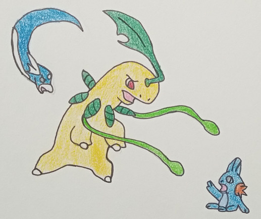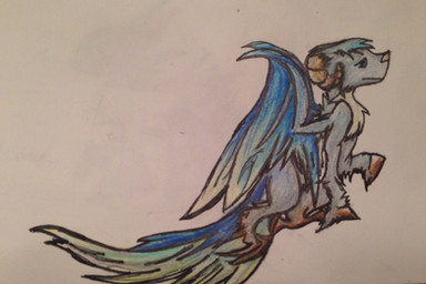 So, this drawing. I've really tried to go beyond with this one. It's pretty simple in nature, but I don't usually drawing two characters interacting like this. It took time and many do overs. But eventually it finally got done.This is Shiva and a tagalong Tamotsu going to meet human children for the first time. This is also Shiva's first attempt at gaining a human form, as you can see she has a long way to go. Stormchaser has told her she need to look friendly and show she's not a threat, as well as look out for her younger brother. Shiva is about 11 yrs old here and a talented Squire, hence her budding antlers and her wings having grown in. She is still just learning to flutter and glide. Flying will come later. Tamotsu is about 8 yrs old, still small (even smaller as he's a runt) and a Page. He didn't want to be apart from his sister and is wary of humans but wanted to try and be brave. Shiva's trying to look extra friendly for the both of them~