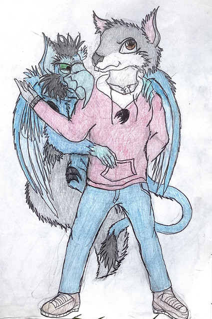 #anthro #antlers #coloredpencils #traditionaldrawing #wings #wolfcharacter #hybridcreature