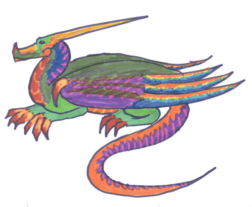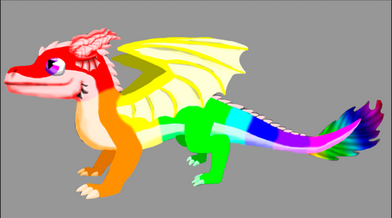 Here's my dragon that I drew for DA's Dragon Tutorial! It's of a rainbow-colored dragon with scales, wings, spiky horns, and all!Enjoy!