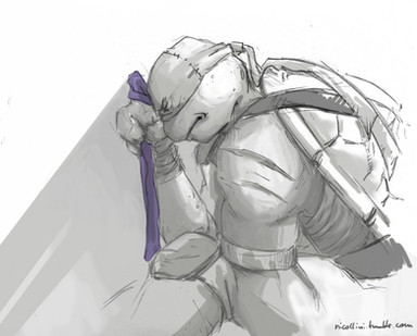 Looks like Raph is spending "me time" thinking about some things that are not as lighthearted as spending a summer day propped in a tree. We all need times away from everyone and everYthing to take a good honest look around us and inside us. Appears that is what Raphael is up to.