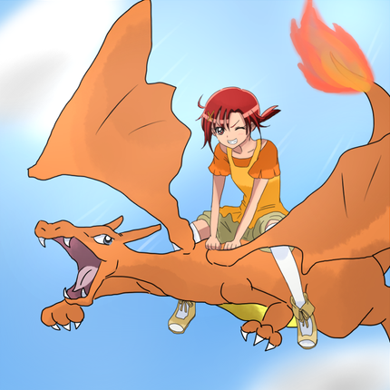 (for now) a random girl enjoying a joyflight on her Charizardi'm really happy with the way the charizard turned out, and the girl as wel