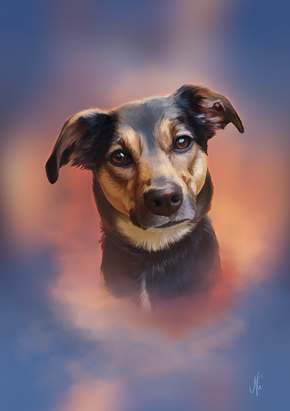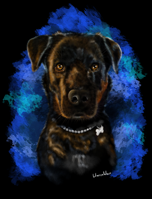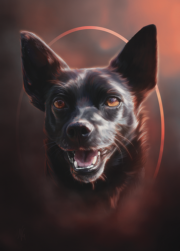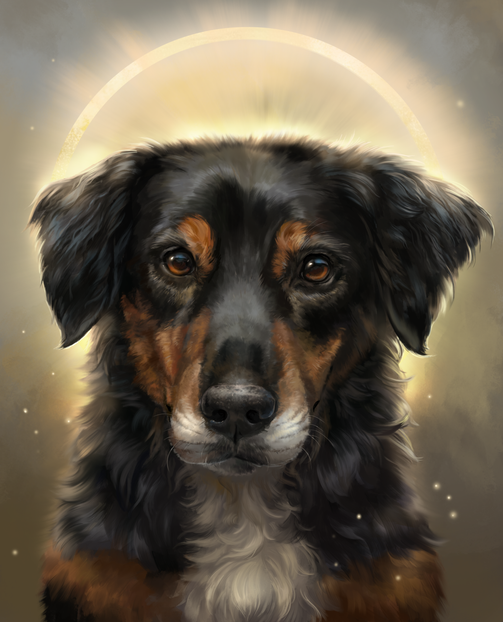 A finished artwork for fiftyblackroses of her familys fallen family member, Sassy, who has some of the most amazing eyes ever and such a fun nose, and what a gorgeous expression to paintΒ© to Nikkayla 2020 and on.