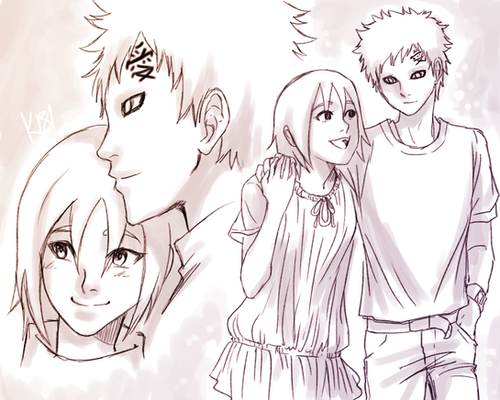 I absolutly love the drawing, it's really cute and shows how I see their love would be. A cheerful and cute Matsuri with a relaxed and happy Gaara.