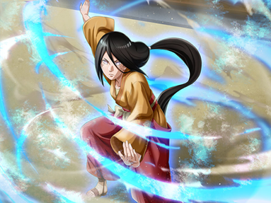 she is a suiton user and a member of team Yakumo Kurama, and Idate Morino, her sensei is Genma Shiranui
