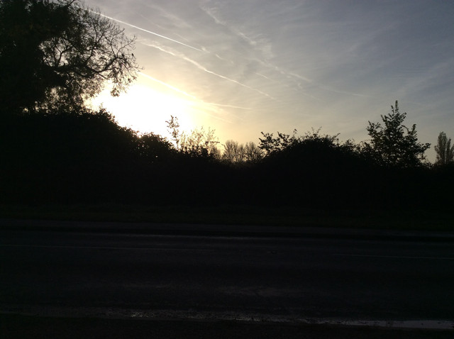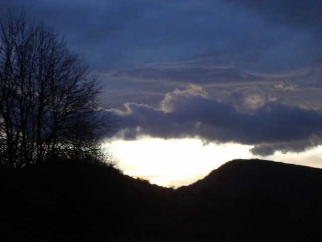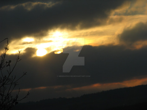 The reason why I really like this image is because the dark above the bright sun and the cliff between the clouds are mixing a great color and the trees in the foreground make it even better.(c) NikkoTheNerd.