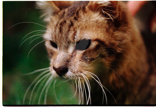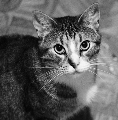 His whiskers really add contrast to the picture, and his eyes draw you in. Actually rather frightening, though his whiskers are forward.