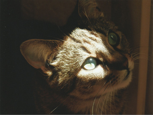 I like how the light on the cat forms an "upside-down curved tear-drop", (if that makes any sense whatsoever) that gives the piece some dynamic feel to it.