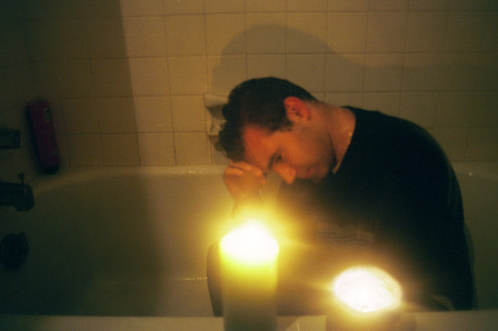 oh you wanted a real critique? Well I like how his face is lit up with the orange light of the flame and the rest is this hazy blue twilight color. I like your posture and clothes, it makes you look like a boy, and like you're trying to get rid of childhood memories (hence the photo album). I like that candle. I want that candle.