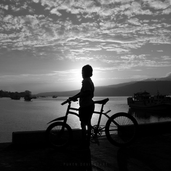 Such a beautiful shot, the contrast of the figure against the sun's strong reflection on the lake is just amazing! I love your b&w shots