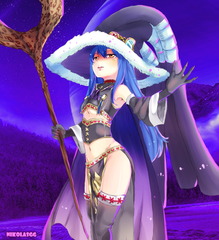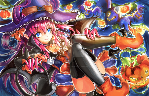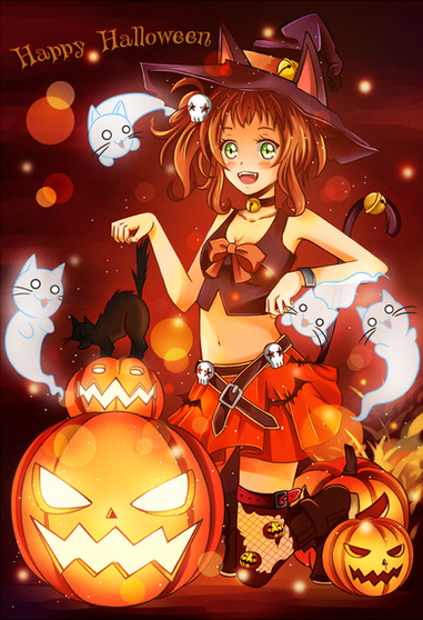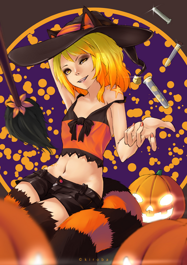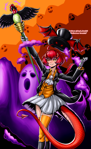 The custumer its a witch, and she have a demond hat... i want to put a cat but a don't know draw it ; w ; )9 i know it so sad hahahhaa~