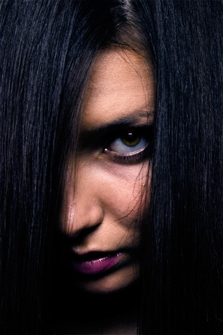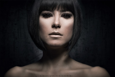 Great portrait!! I can see innocence and smothness in her look, despite the darkness. Awesome!