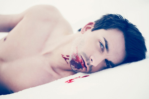 I really like this shot, but the blood looks a little off to me. I mean the blood on the knife and on the ground looks great but the blood on his hand looks more like some type of syrup to me. (syrup that I wouldn't mind licking off of him.