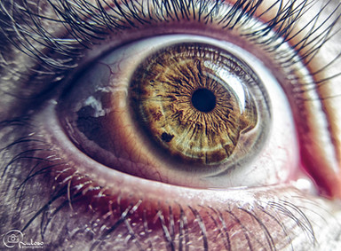 Most detailed and sharp picture of an eye I've found. The reflection of the camera gives it a realistic touch.
