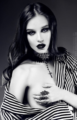 Such an entrancingly beautiful model, and pose. Also love the dark composition, fits so well! <3
