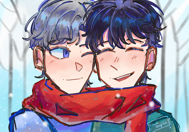 #digitalart #originalcharacter #painttoolsai #anime #boyslove #couple #cozy #gloves #happy #love #oc #original #romantic #scarf #snow #boysloveart