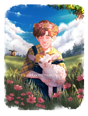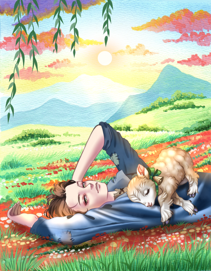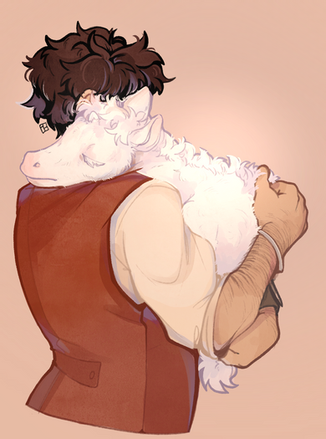 #anime #calm #cowboy #cowboyhat #cute #hugs #lamb #mountain #oc #original #sky #soft #sunny #animestyle #originalcharacter #tenderness