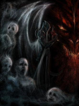 Just sublim! Awesome use of colors and light, the necromancer is really impressive and we perfectly can feel his power!