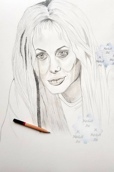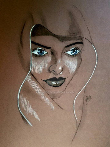 White pastel, white pastel pencil, charcoal pencil sketch on A4 black paper.Related content