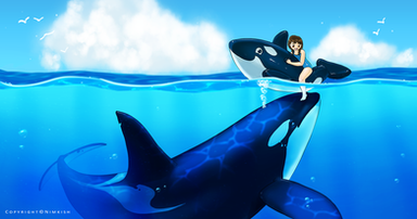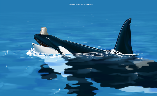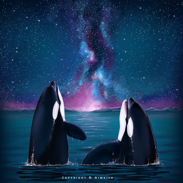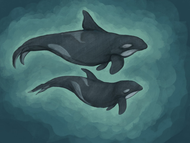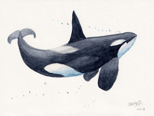 I think I will try paint this one digitally because I'm just so happy with the orcas, particularly the baby.