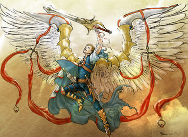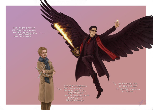 As I said for the sketch, I gave Lucifer bat wings even if he's technically an angel only because I wanted to draw bat wings in that particular moment, but now I'm thinking of doing a second version with dark, feathery wings :3