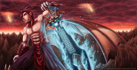 8D I would love to draw that, actually, because last time I did it I didn't have a lot of time to think up a detailed costume for him TuT and it was the first thing I coloured with a tablet and one of the first things I coloured in general, so I think I messed up with the colours TuT we'll see, we'll see, when the damn university stops abusing of my free time =3= *pouts*