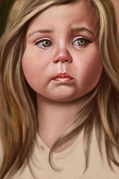 Gorgeous detail particularly in the eyes. Can't quite tell what her expression is- I guess that adds to the creepy factor! Excellent work!