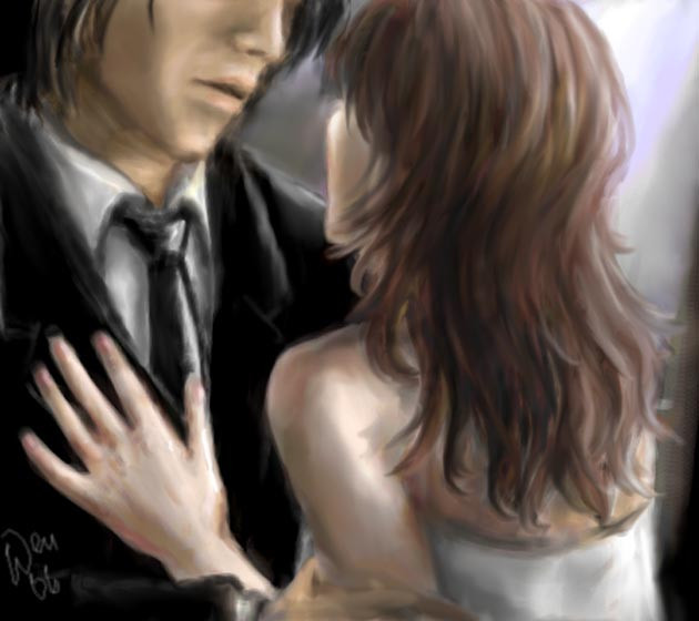 Wow. This is amazing. The way they're holding each other, how their eyes are so fixated at the other's, the marvelous lighting in the background and the way it lights up their faces! And those expressions! I've never seen sadness in bliss demonstrated so perfectly! Simply perfect!